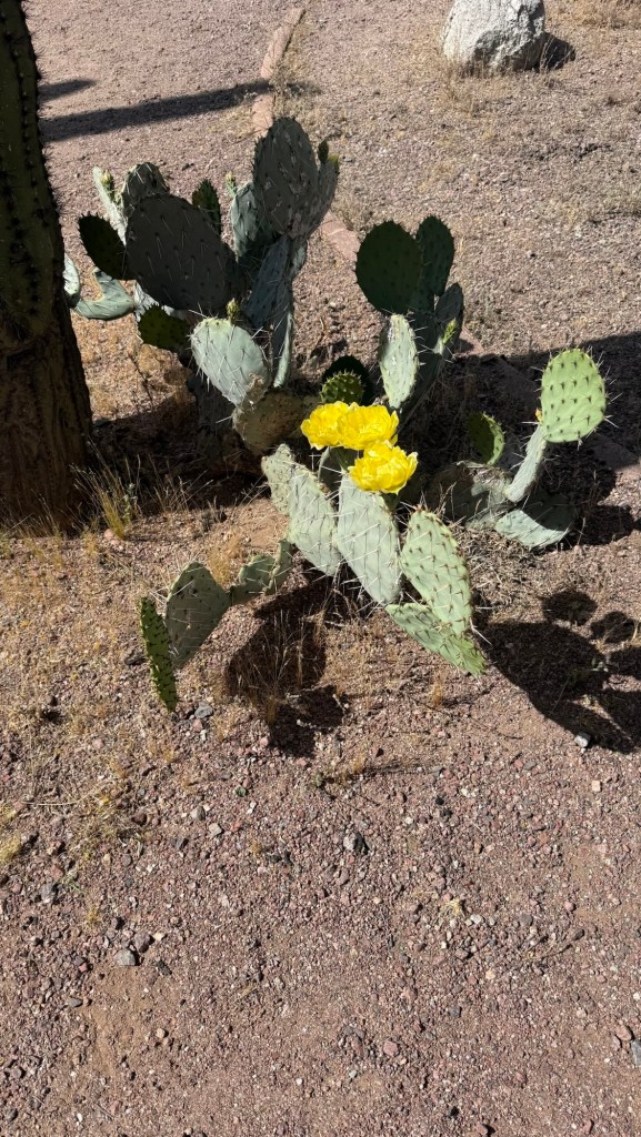 Being in dessert country there are lots of varieties of cactus. This is one I took a photo of while riding and looked it up when I got back to camp. What I will remember is Prickly Pear.