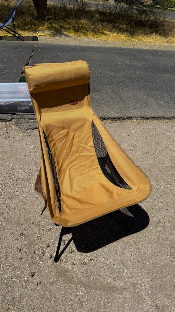 A little aside here. We seem to be continually on the search for the best chair! We have purchase several rather pricey models. At Patagonia Lake, Paulette had won this chair in a game, and has no real use for it so offered it up. Susan traded an item we had (not quite to the caliber of the chair, but Paulette was satisfied) for this chair as I deemed it quite comfortable. It is very light weight and folds up very small.