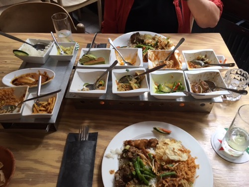 At the end of the day Susan started hunting for an Indonesian restaurant where we could experience a “rice table”. They serve several (about 12) small plates of traditional fare. Indonesia was a Dutch colony for two centuries and the food has been integrated into the Dutch culture. Neither of us had had this experience before and enjoyed that. Food was so-so.