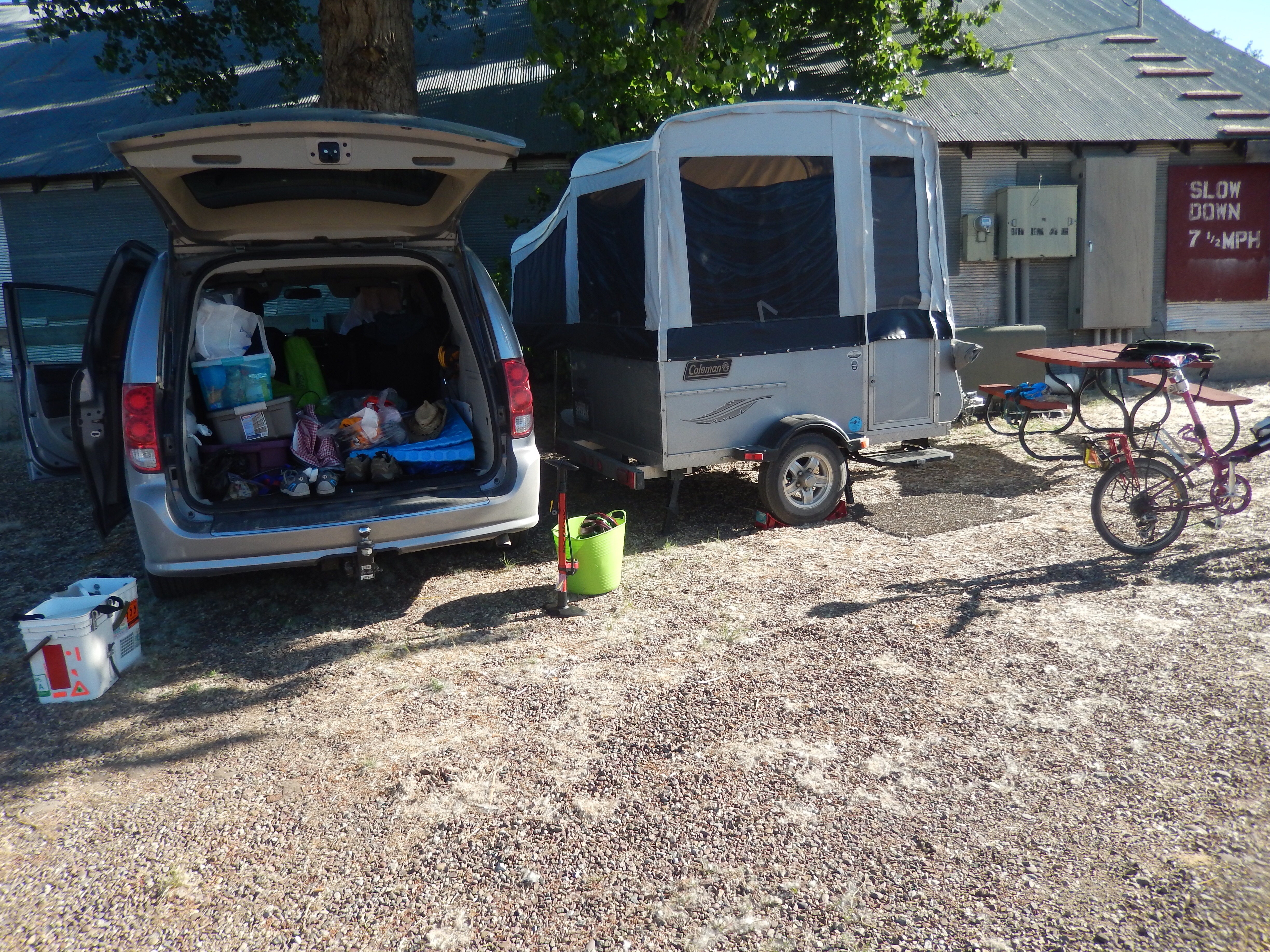 We didn’t exactly get lost once we got near town, but the signs were a bit unclear so we ended up backtracking for a few more miles than we anticipated. Hot, dusty and tired, we all but collapsed into our recliners with a cold drink and a rest before venturing to the shower.
