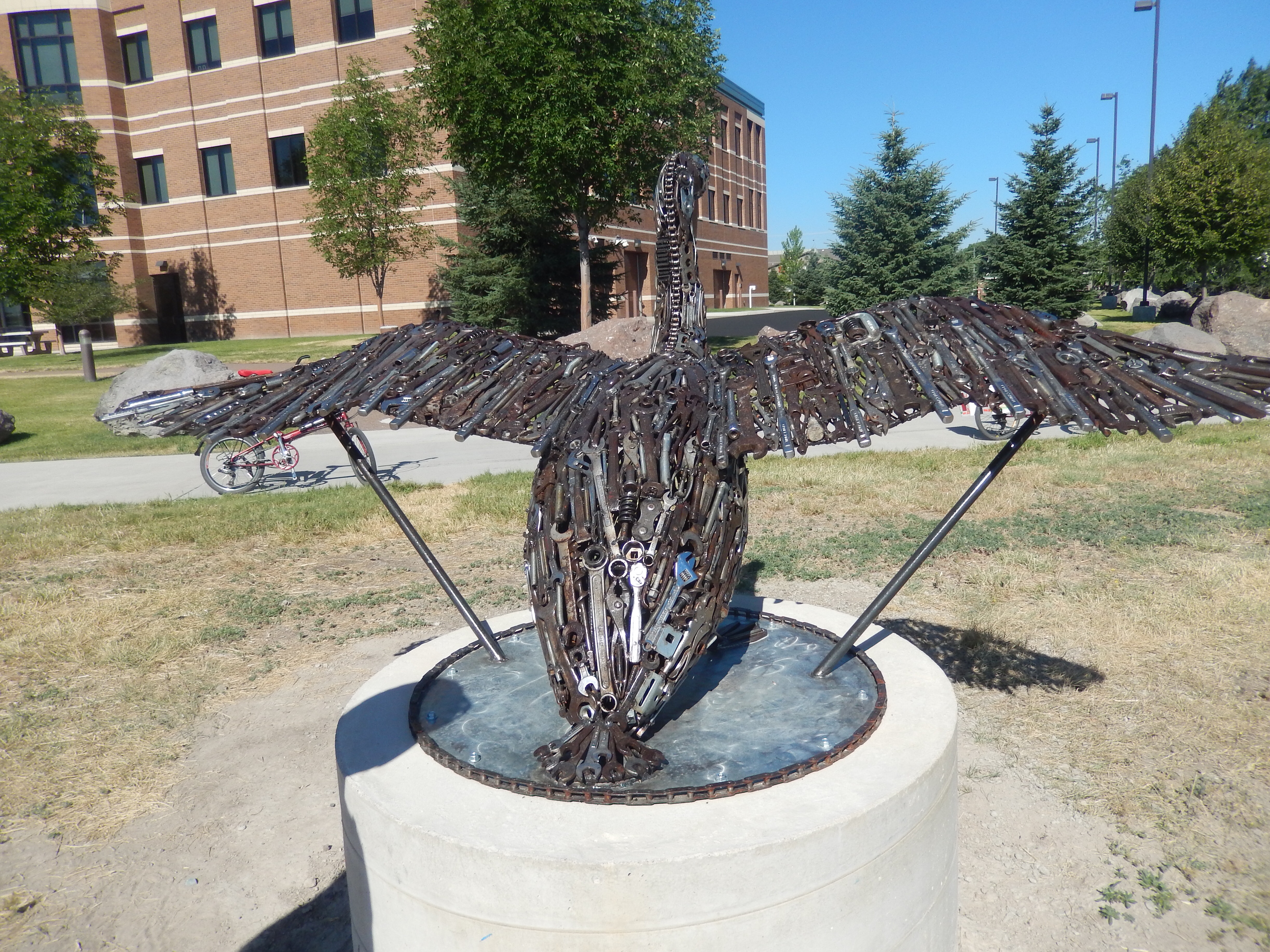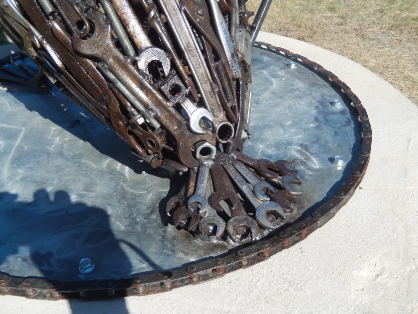 The Rivers Edge Trail follows along the Missouri River and is a very pleasant ride. The many examples of art work along the way make us wonder if Great Falls isn’t an artsy town. Most of that art along here had something to do with tools or related to tool work.