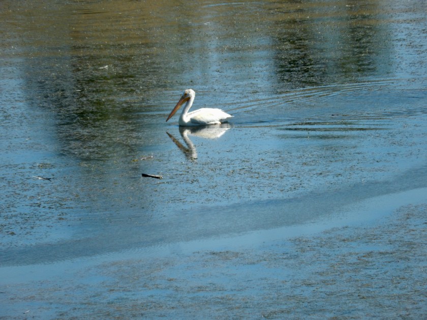 There were at least two heron that I did not photograph. But I got a White Pelican in its place. I was so disappointed when, after I had put away my camera, this pelican slowly took off into a gliding flight, showing its black tipped wings and reflecting in the calm river. Well, disappointed because I did not get a photo, but so pleased to see this gorgeous bird in flight.