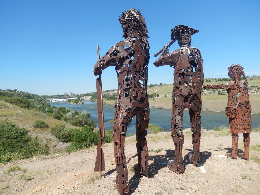 Lewis and Clark were all around here, and as we continue on along the river — there they are with Sacajawea spotting the falls.