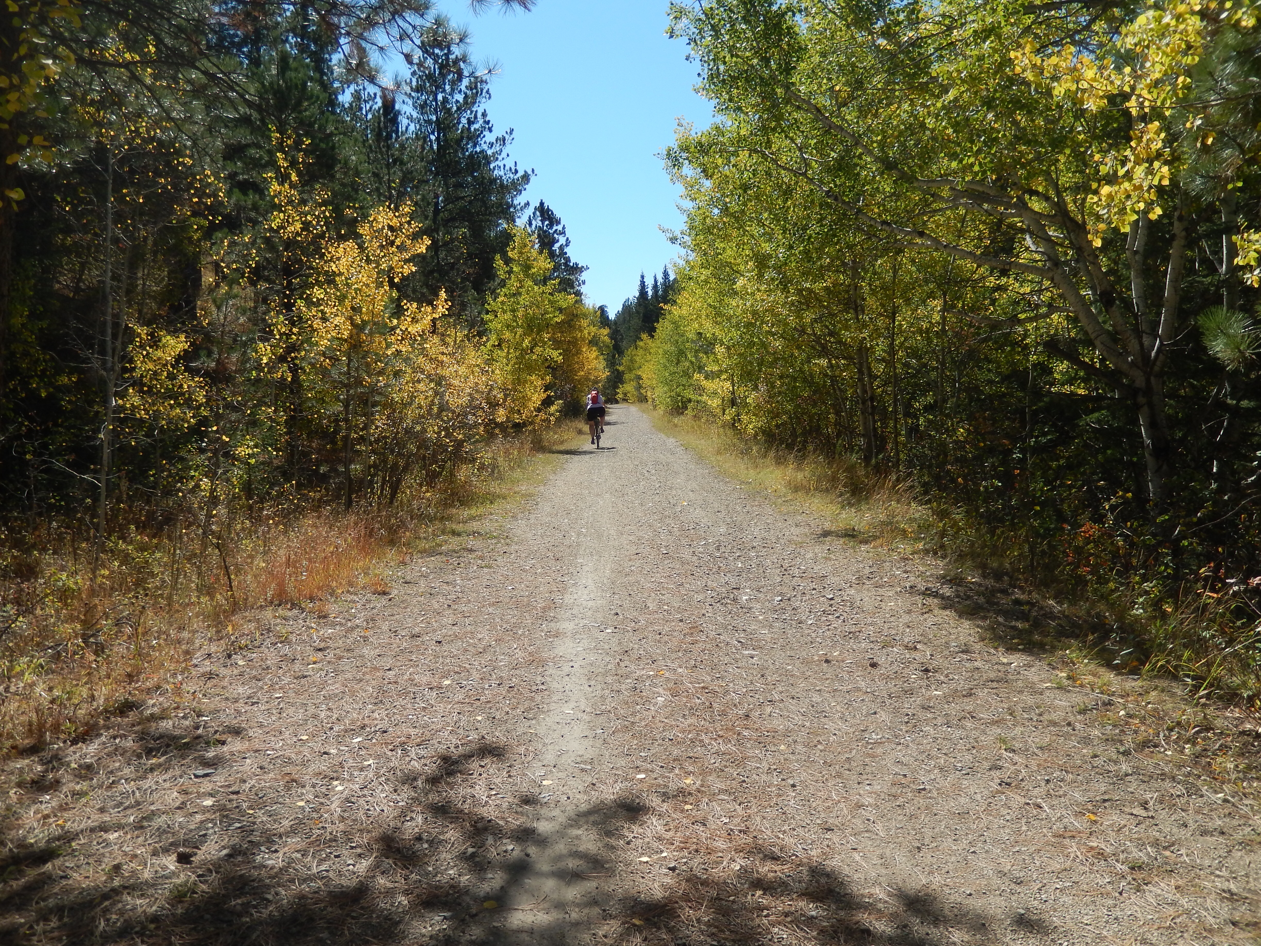 After the teaser of our nice five mile downhill grade to lunch, we began our eight miles of climbing. Being a railroad grade, the climbs are not steep, but pedaling eight miles goes pretty slowly as we grind our way to the downhill on the other side.