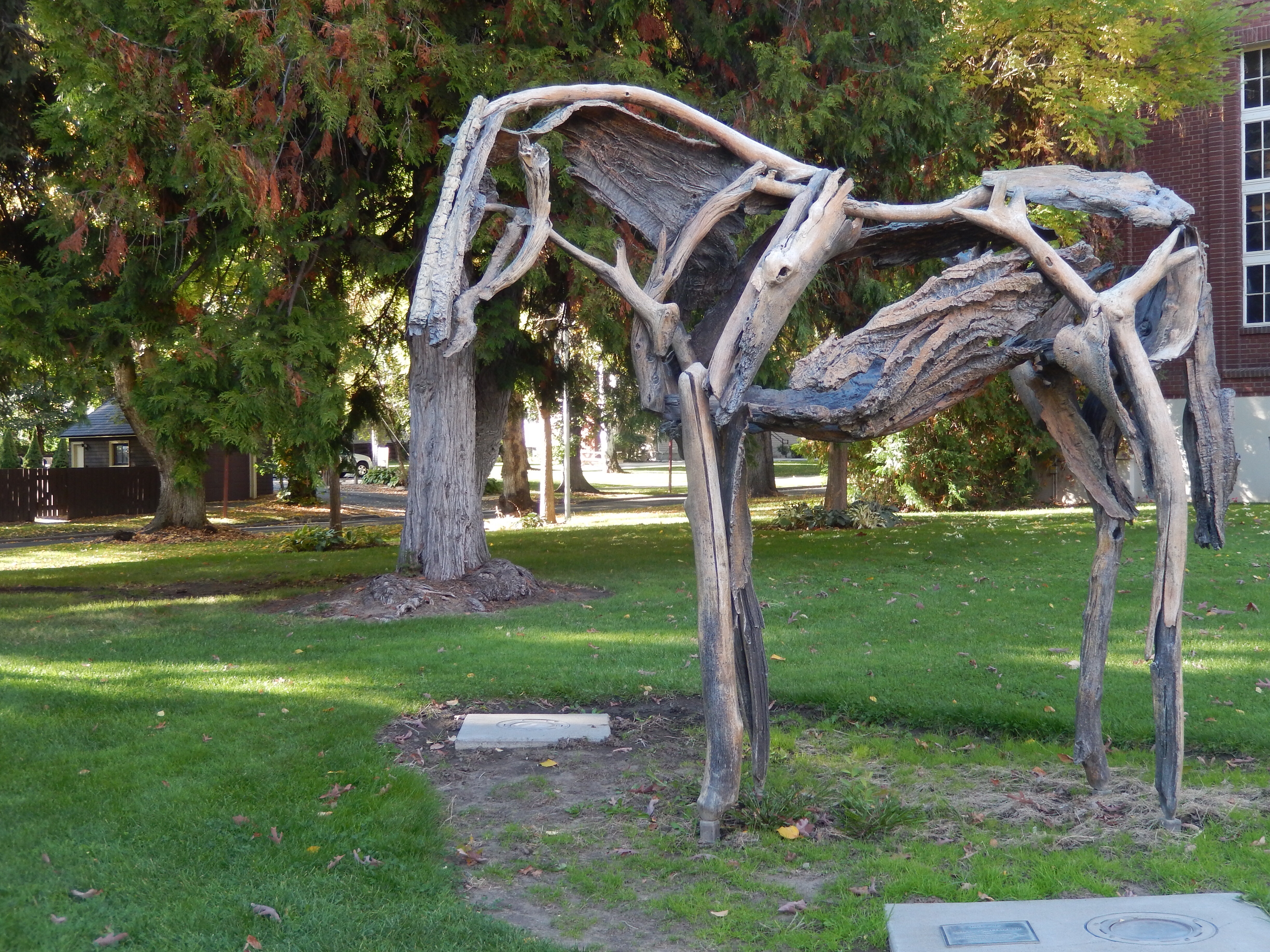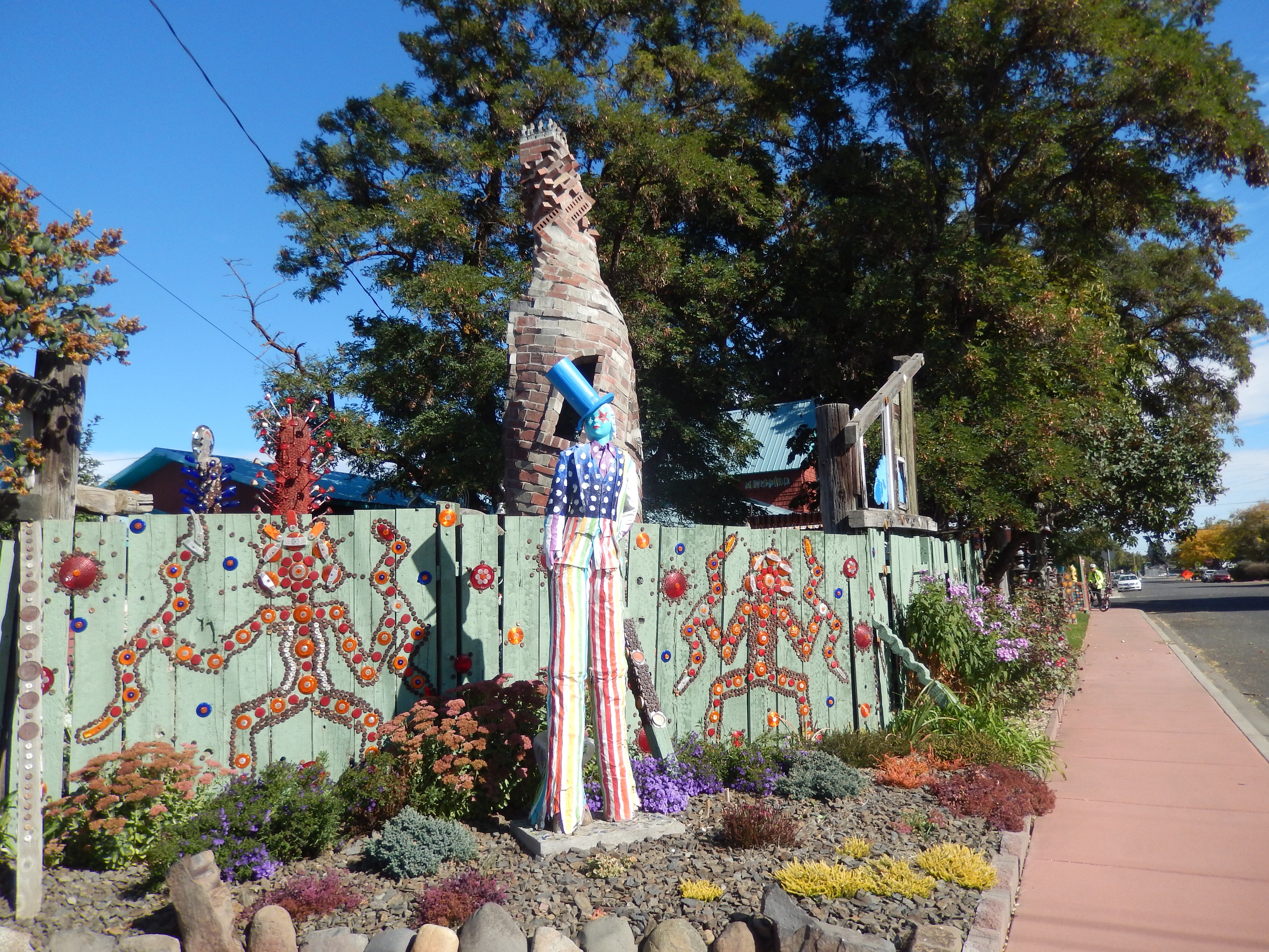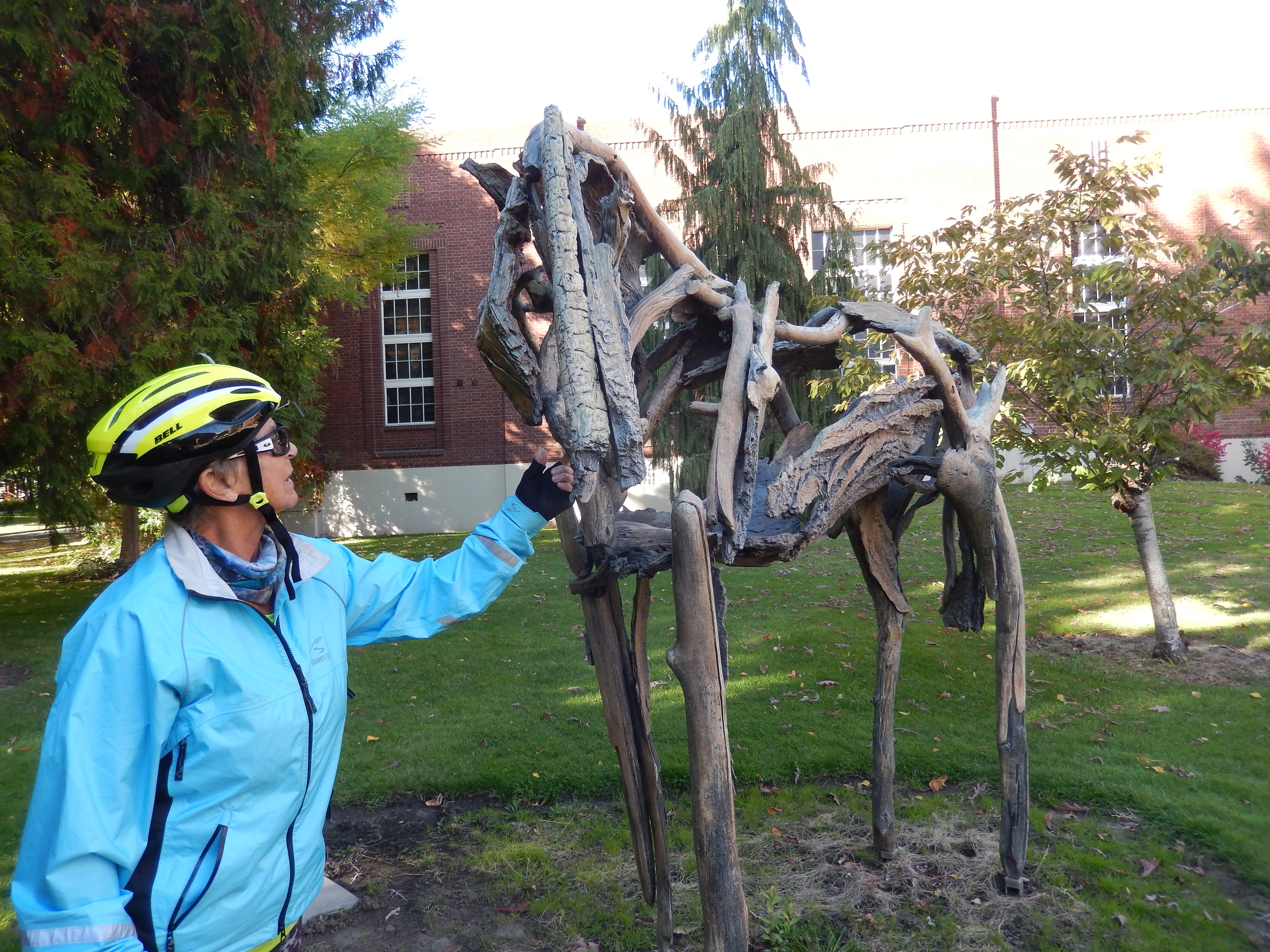 A few more miles through town and we would head back to the motel to shower and dress for our date with Glen and his wife for dinner in town. But first a stop to visit the horse. Made all of tree debris.