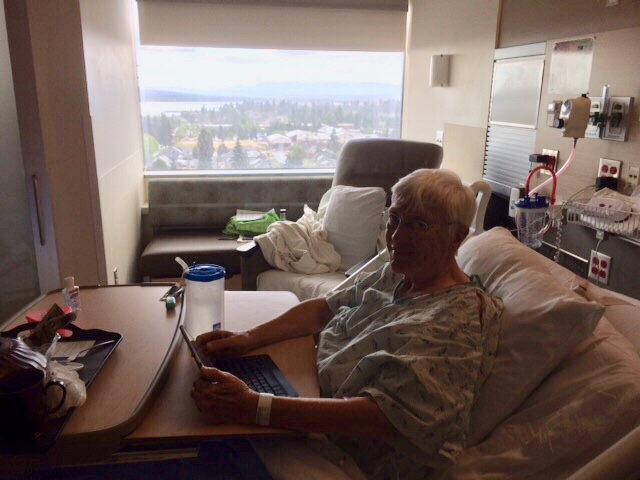 I had several more visits from other than Providence nurses (OT, 2nd PT, Kaiser nurse, Kaiser doctor) and so — felt rather special! The lead Providence nurse (Carla) especially spent extra time with us. Her brother had ridden with Tour d’France and was killed in a crash on one of the warm up rides. Each day after her nursey duties she would linger longer for conversation.