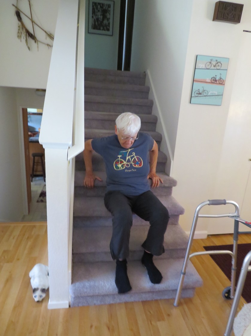 And this time I made it up and down the stairs with only standby as I scooted on my butt the whole way with no problem. I could not even consider doing that this past Tuesday, so I guess progress is actually happening.