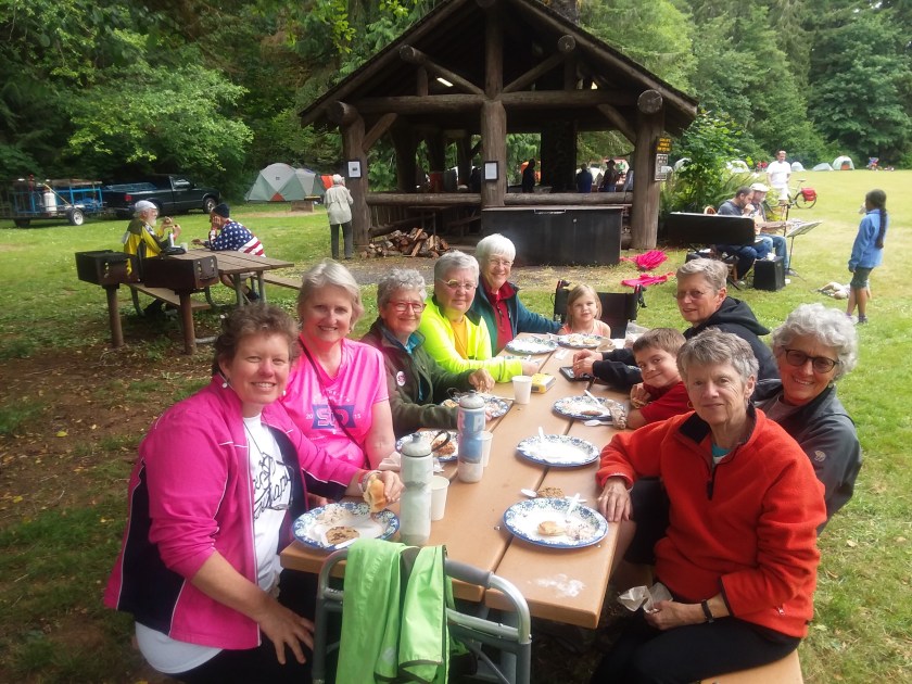 Shelly had arranged for us (The Rainbows) to participate in the “Ride The Willapa” ride (held annually near this weekend of June — 23/24) and do it our way. The organized ride started in Chehalis where riders loaded their gear onto a truck for transport to Rainbow Falls State Park where they would camp for the night. They would return to Chehalis the following morning.