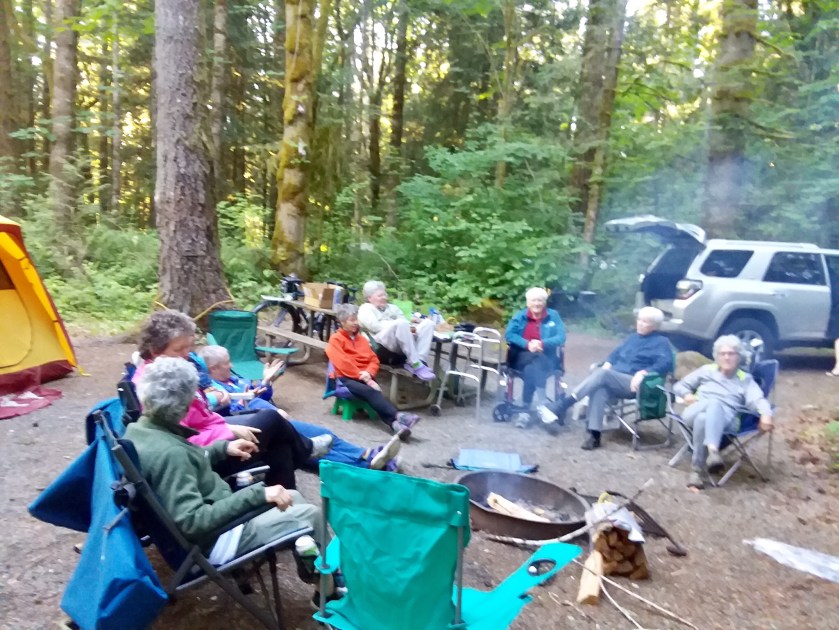 Our group of 13 plus 2 Grands chose to camp the first and second nights at Rainbow Falls. We arrived at different times on Friday evening to set up our campsites and gather for Shelly to give us details for the ride and provided meals, and for our own socializing.