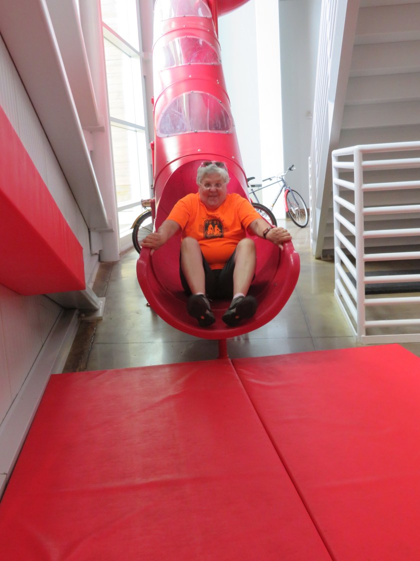 How FUN is that!! Never heard of that phone challenge, what a great way to explore a new city. And going down that slide…you two are really young at heart!
