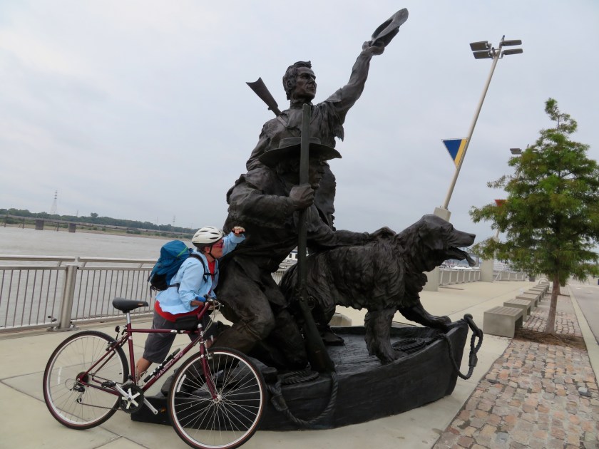 What an utterly sublime trail! So glad you and Susan were able to get a few sightseeing bike trips in. So impressed (again) with your photos, from the Arch and Lewis and Clark (glad they included their dog Seaman!) to the depressed factory area. Kind of spooky, especially the bridge sculpture. Fascinating stuff for sure.