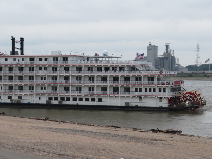 Continuing along the Great Mississippi River, we got a glimpse of the big paddle boat (or whatever they are called) that takes tourists on sightseeing trips.