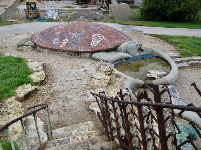 This one has been defaced and looks like it was once a very creative sculpture. This area is in a depressed section of town.