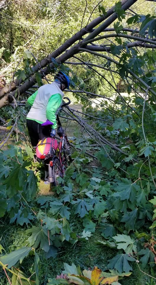 On one of the rides I did with Cindy we came upon an obstacle in the trail. Cindy wanted to detour around this fallen tree but I said no! We could make it through. And we did.