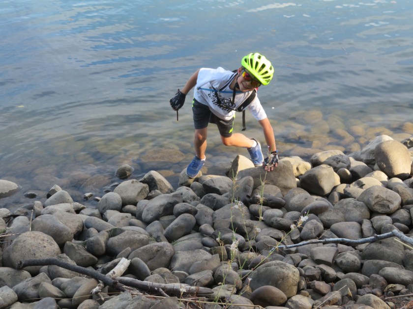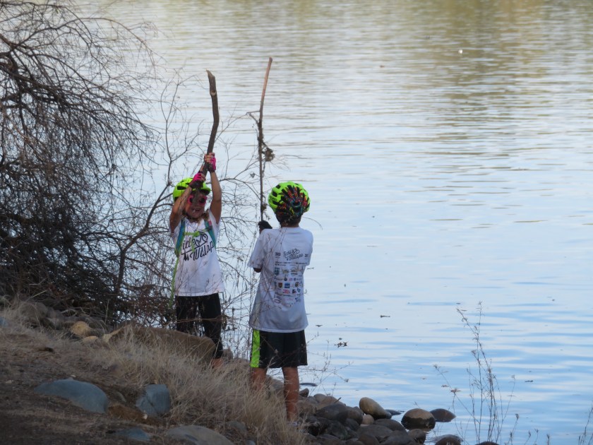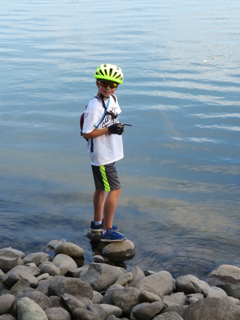 Each of the Grands had had their own separate fall, two on the paved trail and one in the water. Jaydon says that he did a triathlon — bike-swim-run. Lucy says he was not swimming, he was falling!