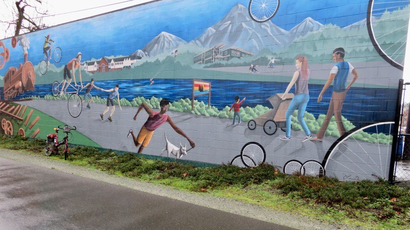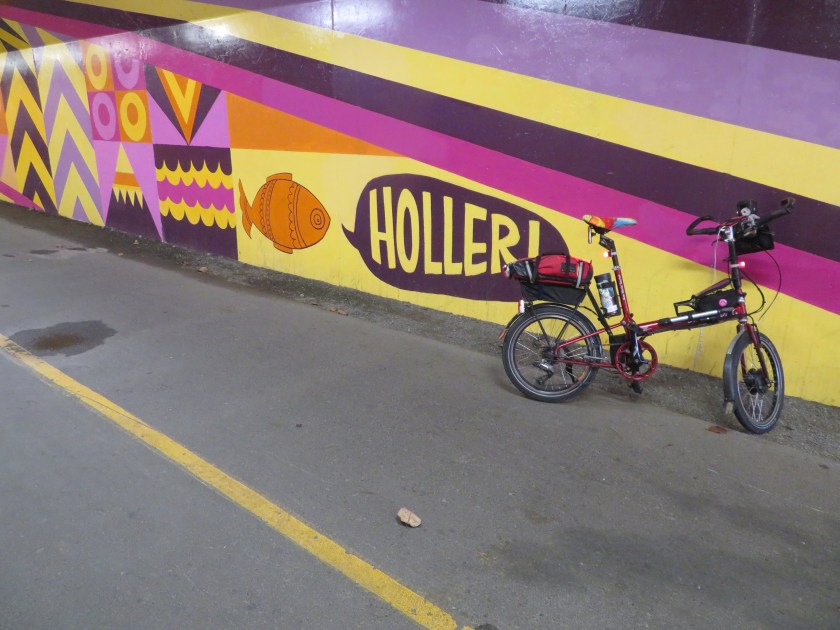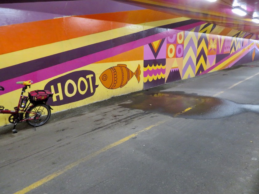 I found a couple of walls for my ‘Walls Challenge’. The walls of the bike tunnel are whimsically painted for our enjoyment.