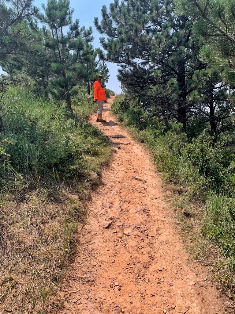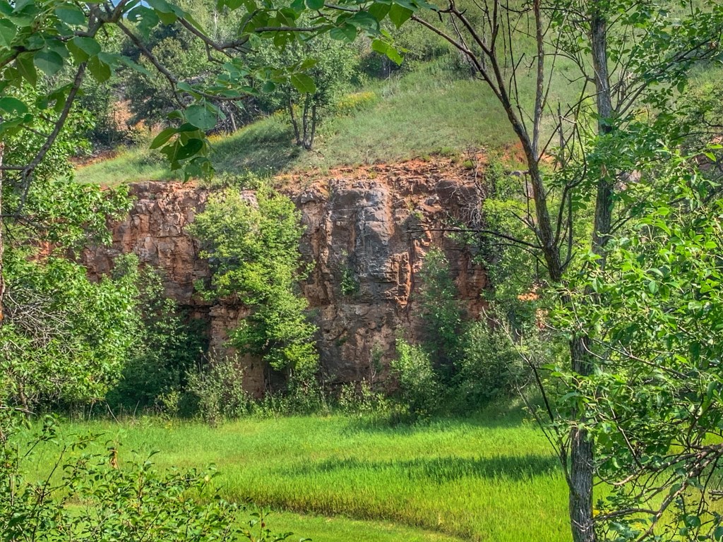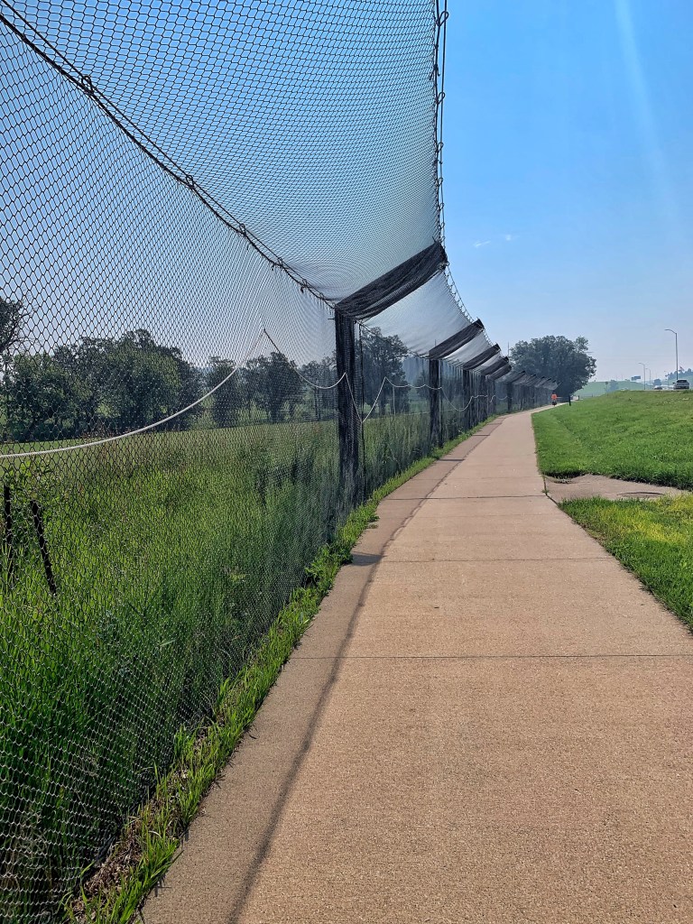 Before leaving Spearfish we took a morning bike ride along the bike path. Riding in the other direction from yesterday, we wound through a more forested area, and a picturesque wood rail fence, and by a golf course with overhead netting to prevent errant golf balls to land on our head.