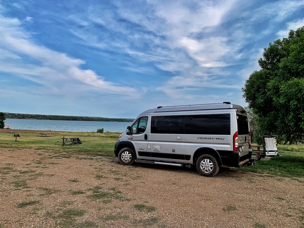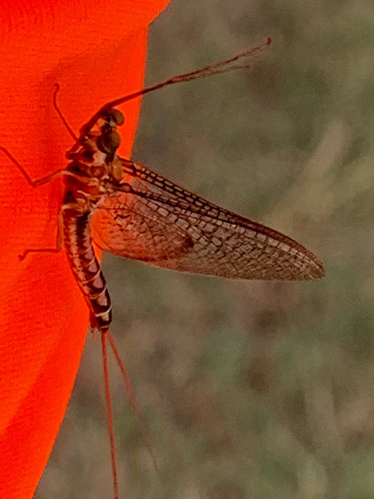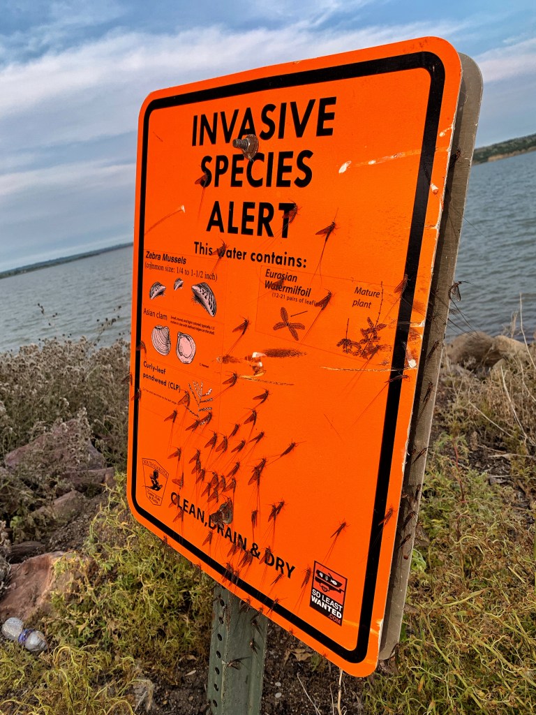 Now it was time to head for a home for the night.. It had been a long and somewhat boring drive through the plain South Dakota Plains, and we were ready to be done for the day, During her research for our trip, Susan had discovered a camping option at a Fish & Wildlife area on the Missouri River just outside of Chamberlain SD. We checked out the camping option and Susan got so excited to see all the Mayflies which is a good sign for good fishing on the river.