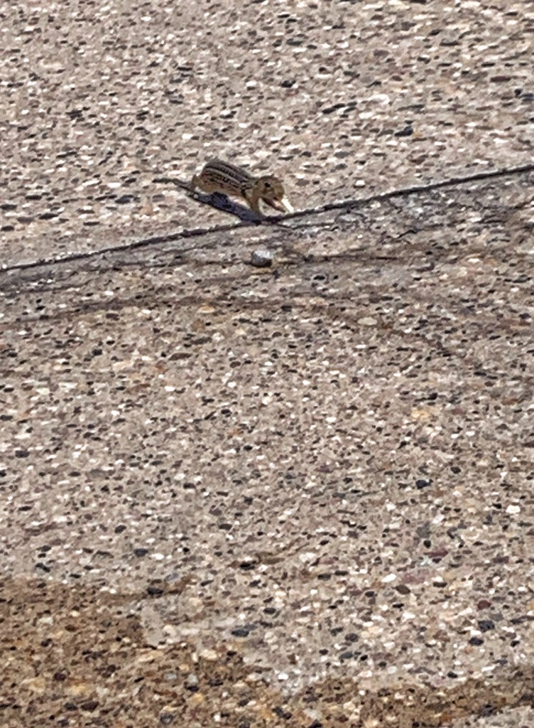 On the road again we made our usual rest stop to stretch legs and use the restroom. Here I saw for the first time that I recall, Ground squirrels. They were abundant here at the rest stop and scampered all about the grounds and parking lot. To me they slightly resemble chipmunks with similar markings on their body, but are much body with a longer face and flatter tail.