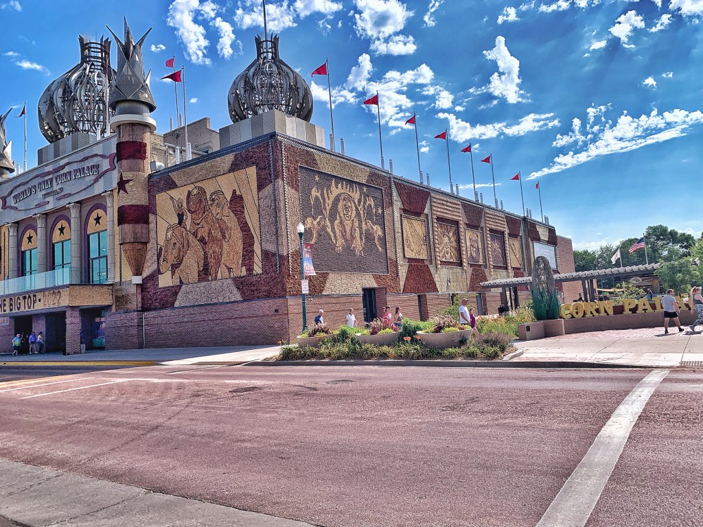 The only other time I have seen the Corn Palace in Mitchell, South Dakota was with Susan when we traveled to Wisconsin several years ago. Until then I had not even heard of it. At that time we toured the inside and appreciated all the things made entirely of corn and parts of corn: cobs, tassel, husks, kernels. This time we simply parked and walked around for views of the outside.