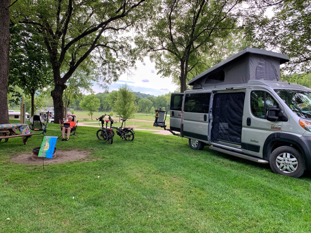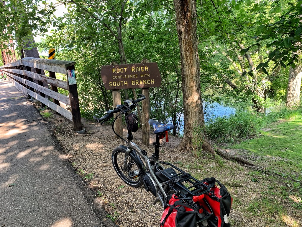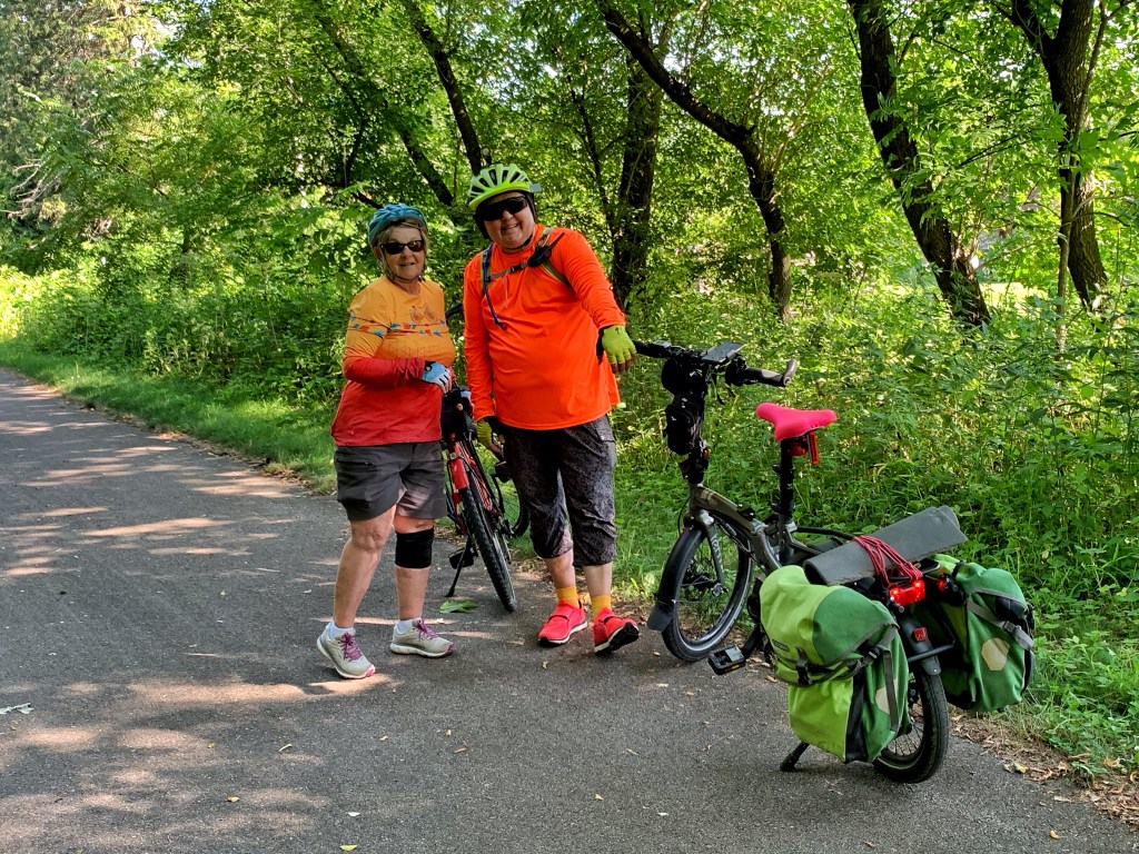 We are two of five ‘sisters’ who arrived a day early for the campout. So I wanted to ride at least part of the Root River Trail that the group would be doing the next day. Susan agreed to an 8:00 morning start and Rhonda, one of the early arrivals, chose to join us for the ride.