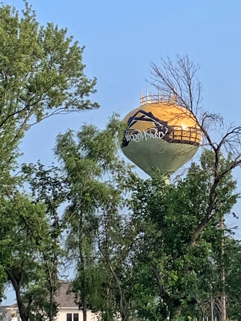 At the campground, a rendition of the bridge as a logo on Woodward water tower.
