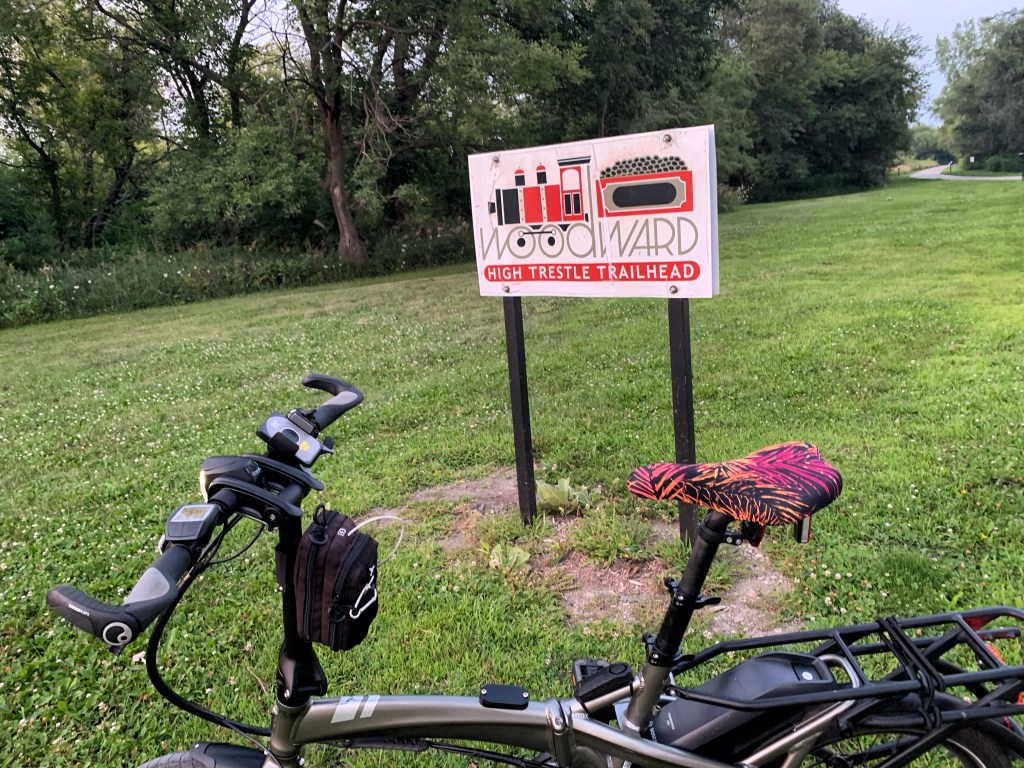 Our destination: Woodward (south of Ames) Iowa. We (especially I) want to bike on the High Trestle Trail. Our new friend Rhonda, at SOTF campout, lives in Des Moines and told us of a place to camp right on the trail, and helped Susan with the mapping to get here. And here we are.