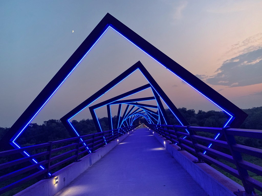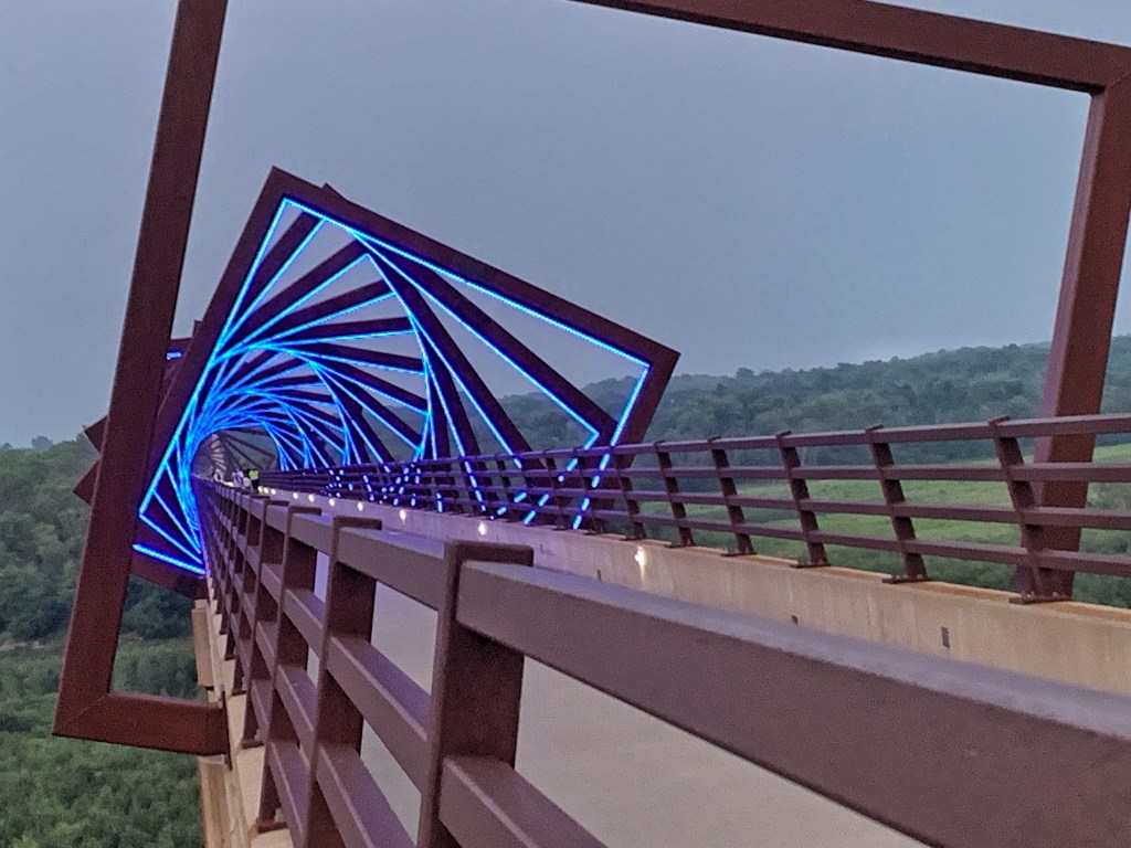 The trestle bridge, all lit up, is a highlight for this trail. I think it might be about an hour from Des Moines. We rode more today and it was HOT. Will blog about it later.