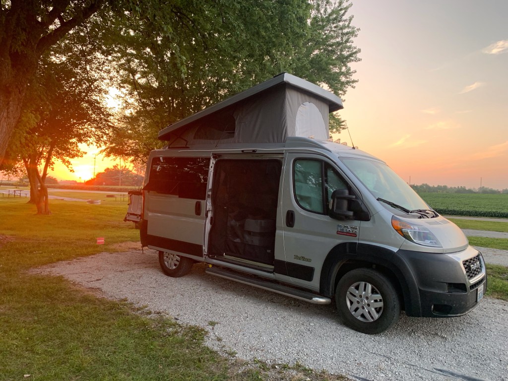 Our last stop in Iowa was at a rest area where there was a wind turbine blade on display. I did not know that the blade weighs that much! It is so tall that I could not get the entire blade in the photo. To the left is the top of our van.