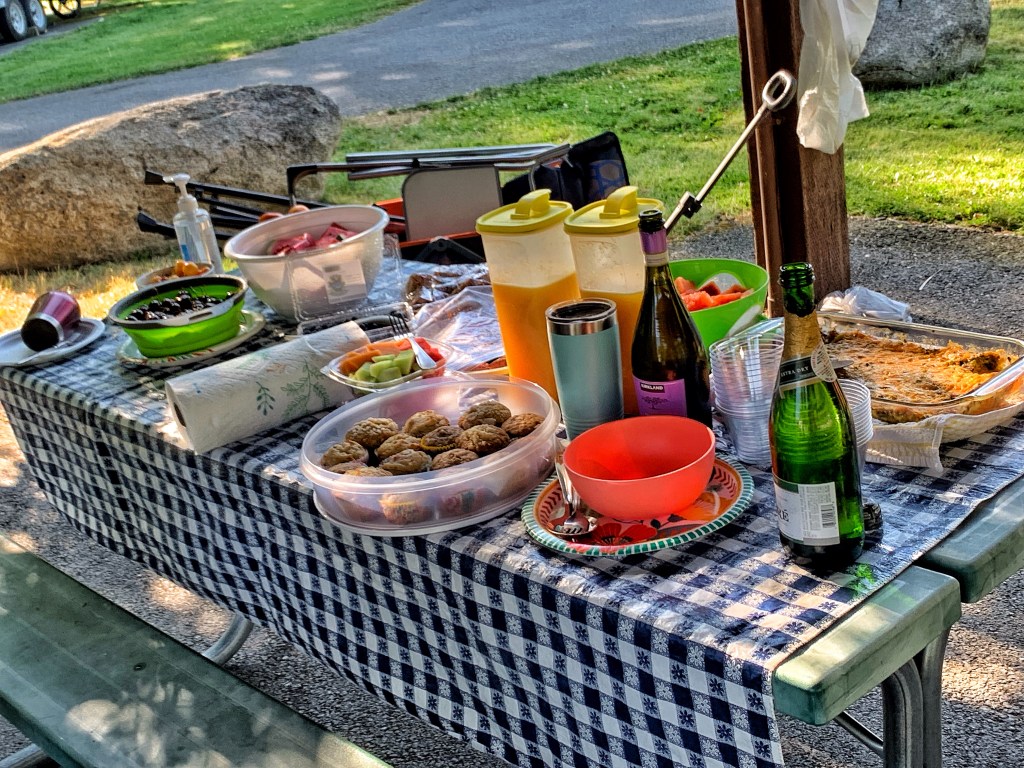 Heading back to town, Susan promised me an ice cream! We had that and did some shopping (buying) at the store next to ice cream for another sun shirt ;’0. The ice cream filled some emptiness but we had some saved up room for a light lunch right after. We stopped at Joe’s for a Philly cheesesteak to go and sat at the only shady spot we found at the park where they were setting up for this afternoon’s Farmers Market.