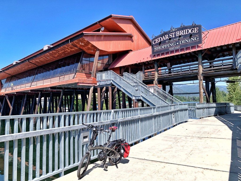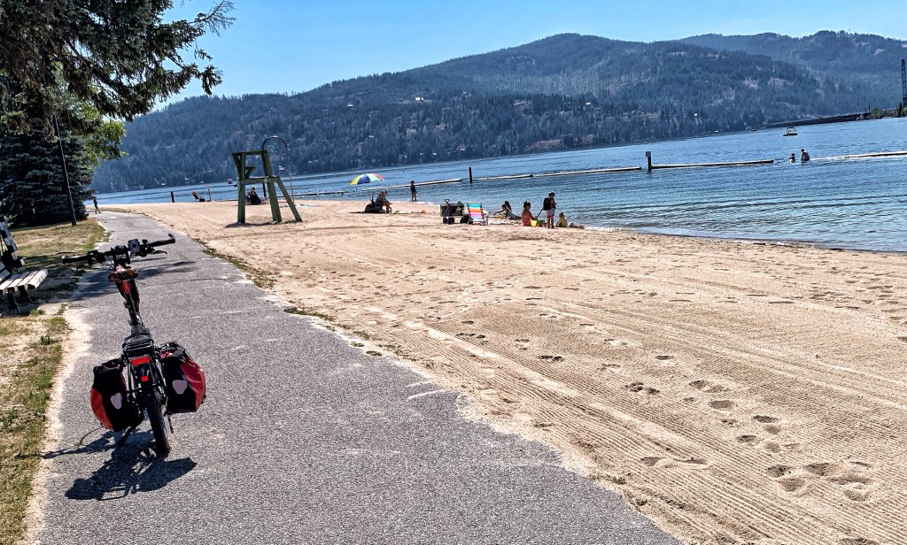 After a cruise around the beach we continued through town and to the long bridge. We have ridden this bridge several times and still enjoy the fact that Sandpoint saved this for pedestrians and cyclists when they built the new highway right next to it.