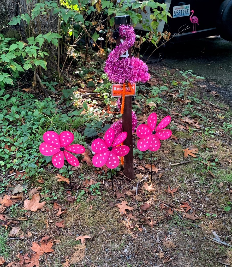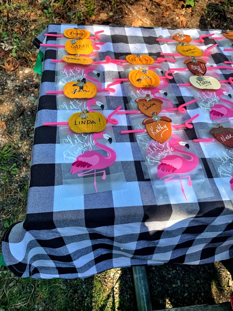 Well fed and ready to roll on, it was time to check in at Flocktoberfest Flamingoes of course is the theme, and you see them everywhere. First, pick up your name tag, and see some flamingoes around