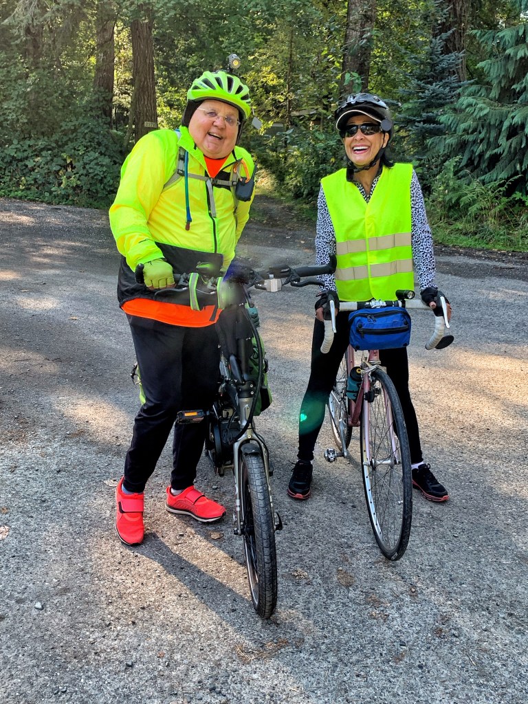 The first full day was for everyone to do the activity of their choice – rock painting, knitting, crafting other things, or – in our case, a bike ride. At first we thought there might be 3-4 others joining me and Susan for a relatively short ride, but many are not comfortable riding on roads with traffic. They much prefer paved trails, but there are none nearby.