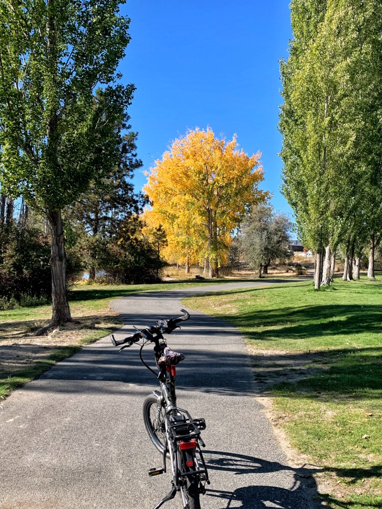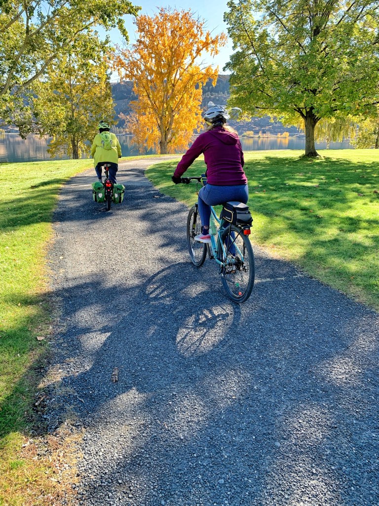What fabulous weather we are having. Today was a bike ride all through this huge campground. There was only one sister to join us for today’s ride – Jen. The trail is relatively short but with the distance between camp loops, the rides through each loop and a return to the entrance booth, I feel we got in a decent ride. And quite pretty.