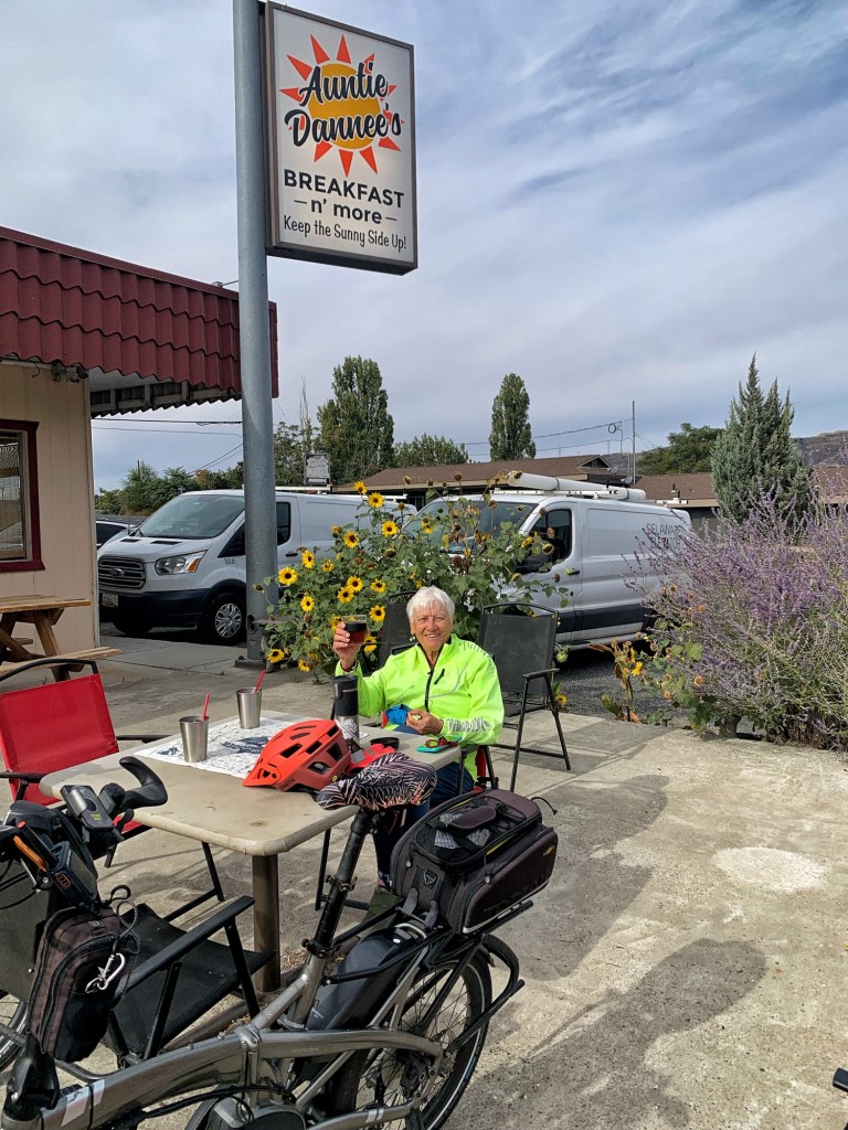 Nese had turned back by now to join the hiking activity starting from camp, Susan and I continued on. We made our way to Electric City for lunch and I was happy they serve breakfast all day, as that is something I often like to have for lunch.