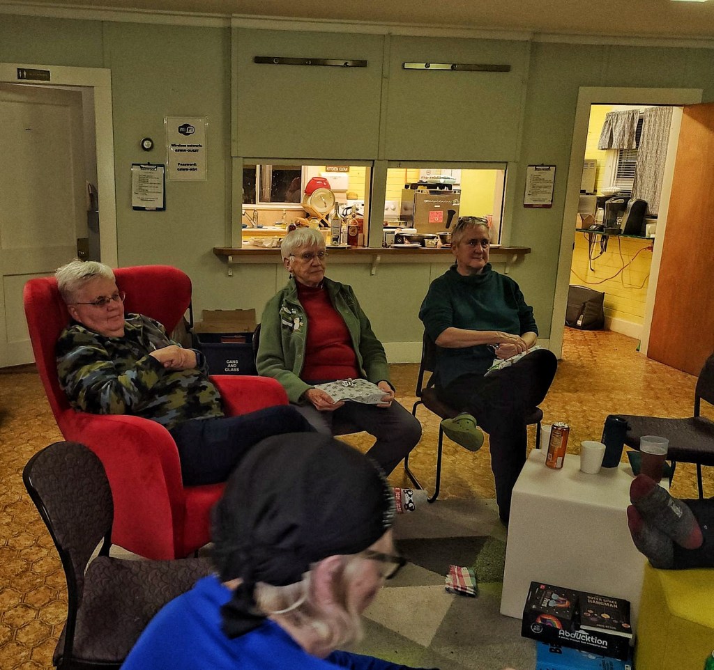 We each spend our nights in a place of our choice, several in a motel or Inn nearby, we as well as Vickie, Maridee & Laura, in our vans at a nearby campground. We gather in a centrally located venue that has enough room for us to enjoy. This time Kristi & Kristin rented the Girl Scout house which worked out really well and everyone was free to come and go as we pleased.