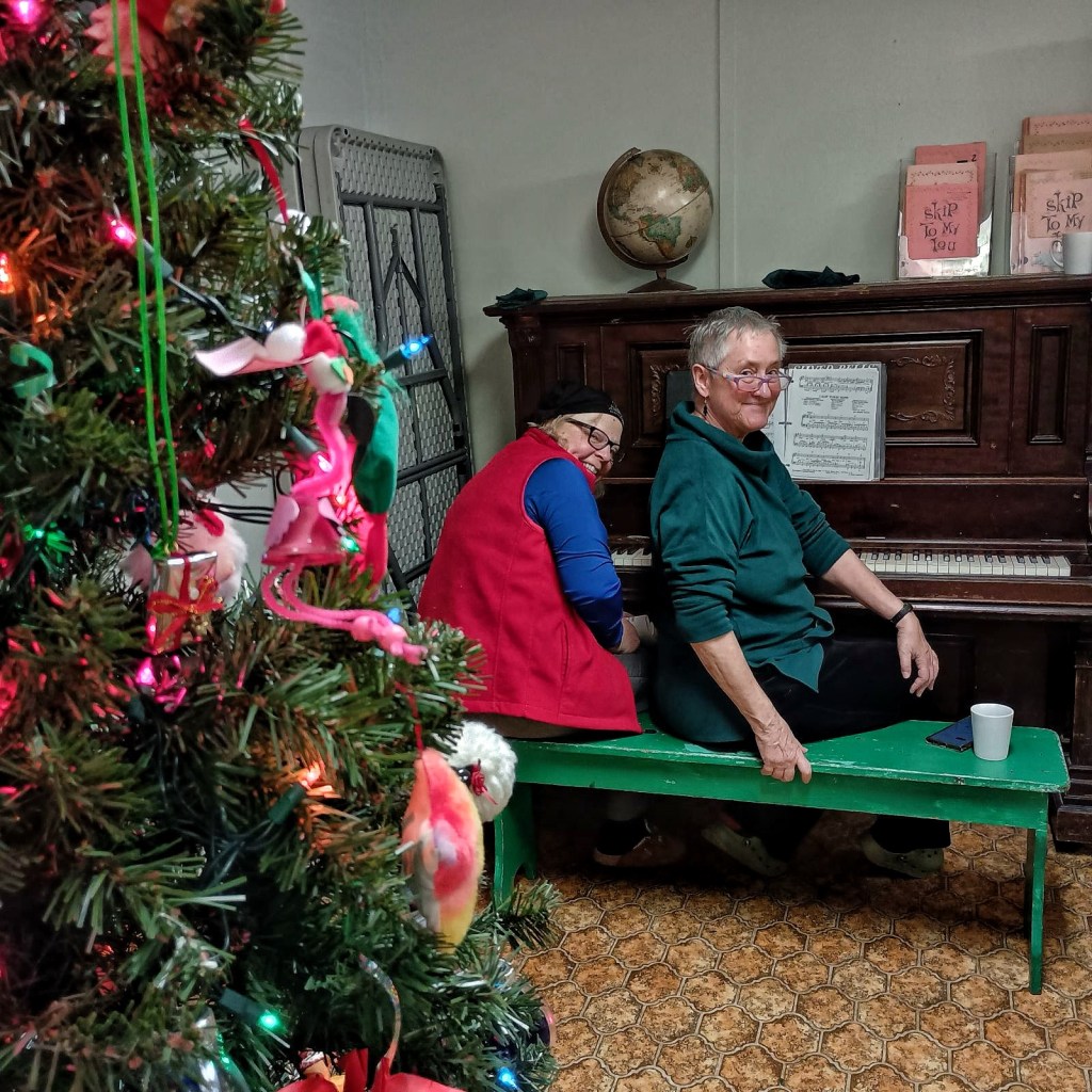 Talented Vickie plays Christmas music for many of us to sing along with.