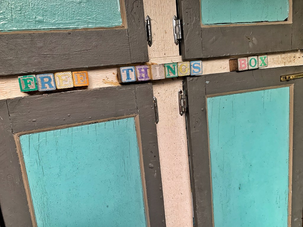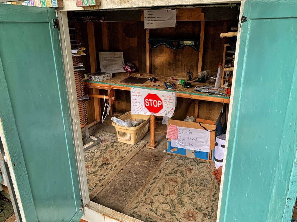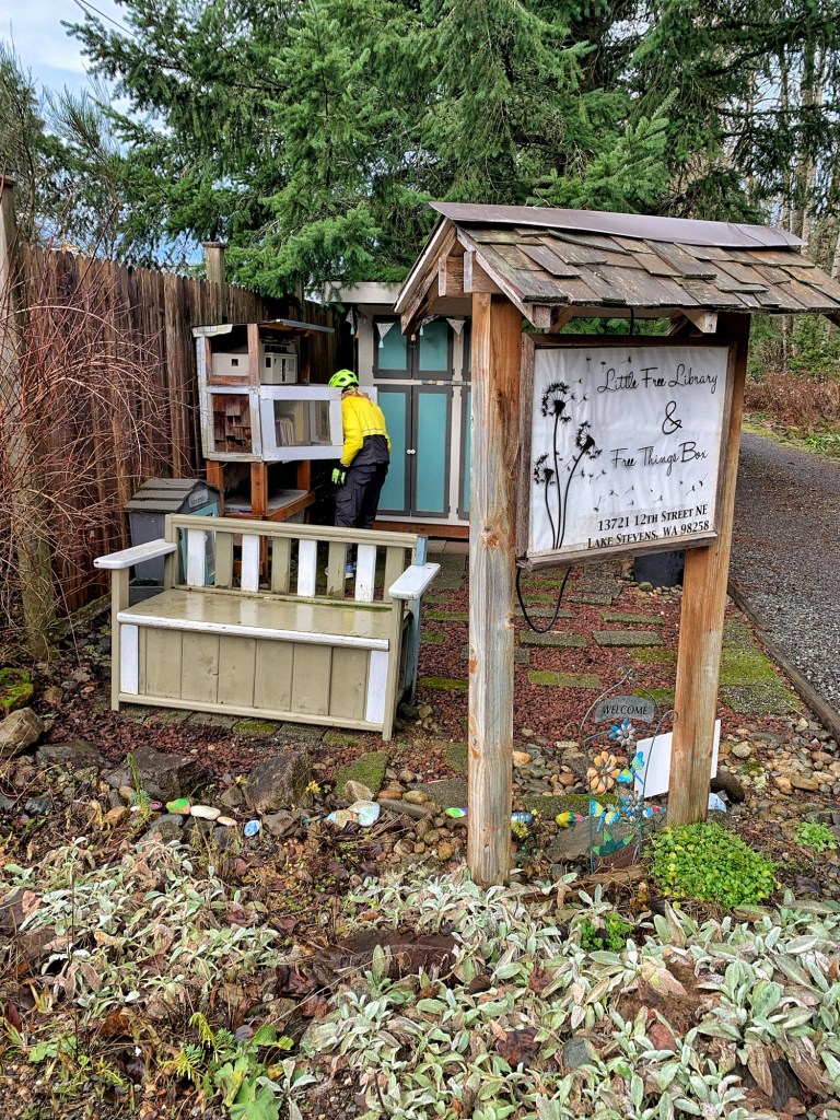 A stop at the little library and free stuff shed amounted to just looking, no taking of anything.