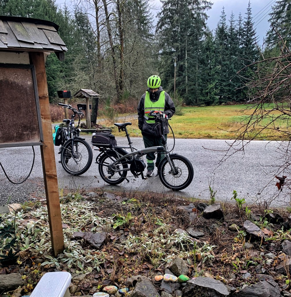 We had lunch at a favorite spot in Lake Stevens — Bisquit & Bean — where we got out Bisquit breakfast sandwiches that we like so much. Road construction closing the road I had intended on taking to the finish made us revamp and complete the ride back on the trail.