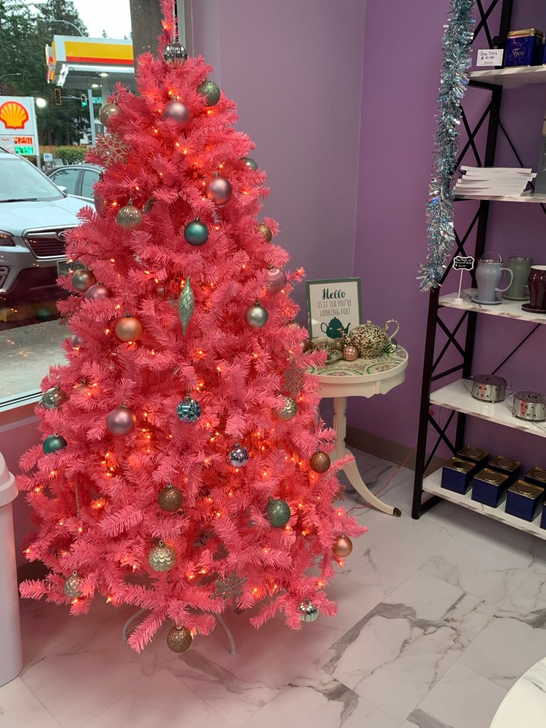 This was a first for me —- and maybe for Linda — a pink Christmas tree. Why not?