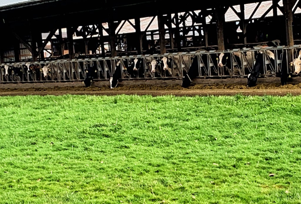 The cows were home and having lunch.