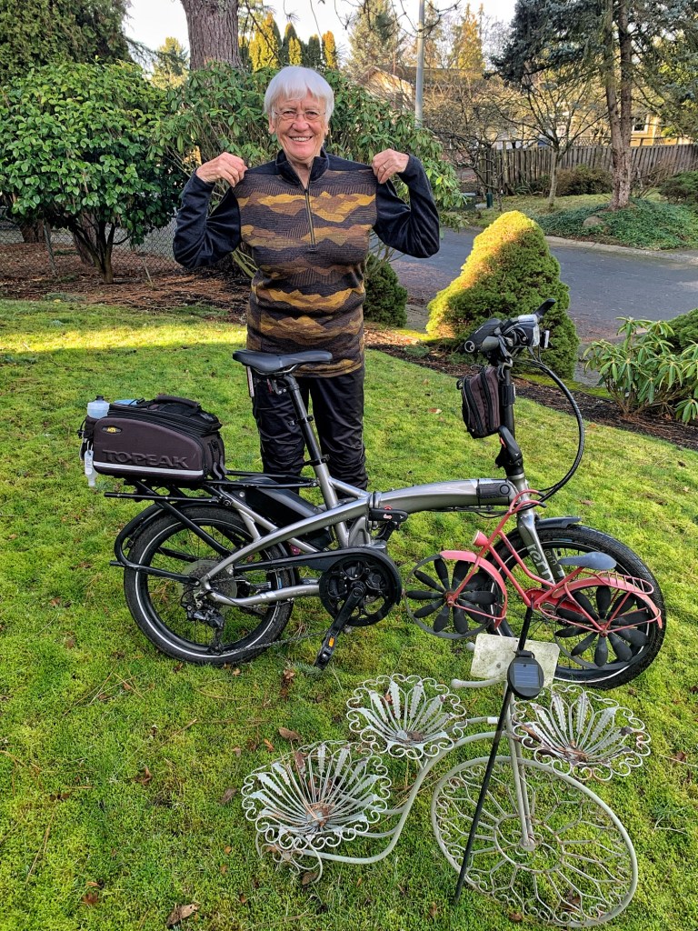 Fortunately I did get in a couple of my local bike rides after that. No photos because, well, you’ve seen them all!! Well… maybe not this one as I show off my new base layer shirt that Susan got for me for Christmas. Note the rare sighting of a sun streak.