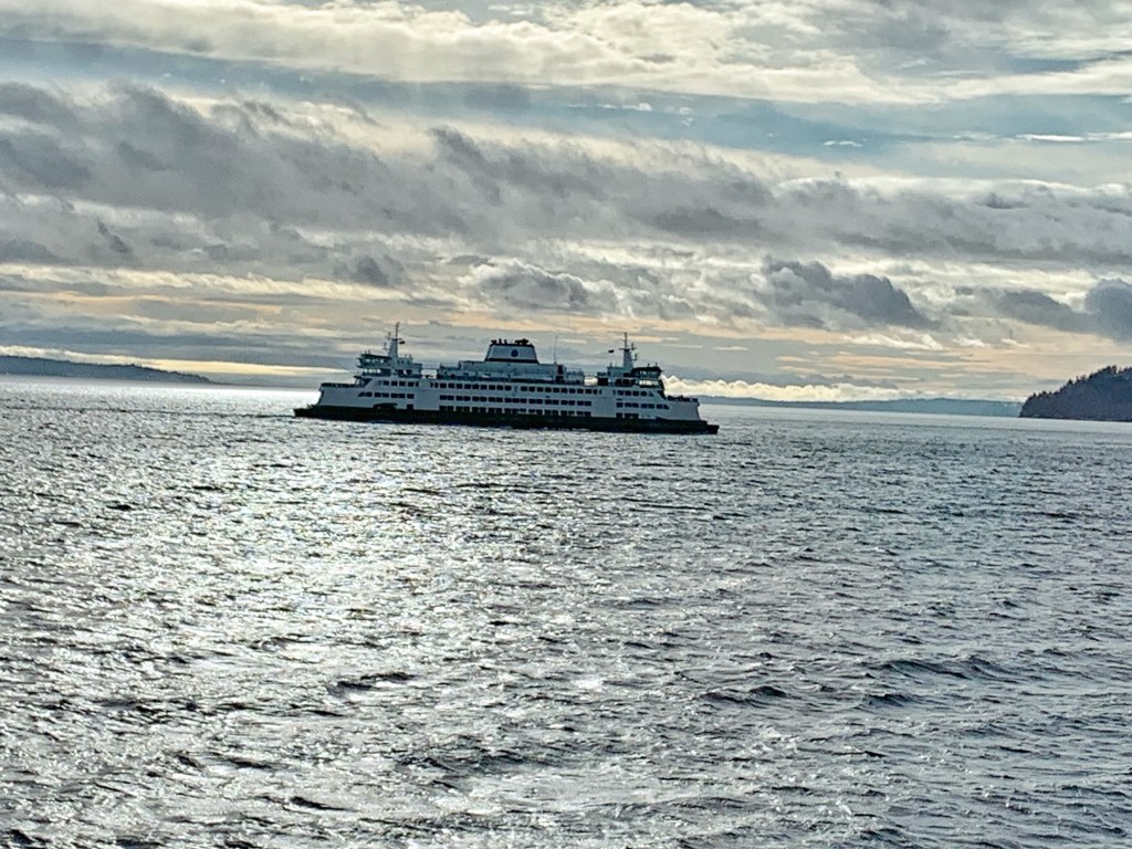 Off I go to Clinton, Whidbey Island. Clouds hold some rain, but at this point the rain was light.