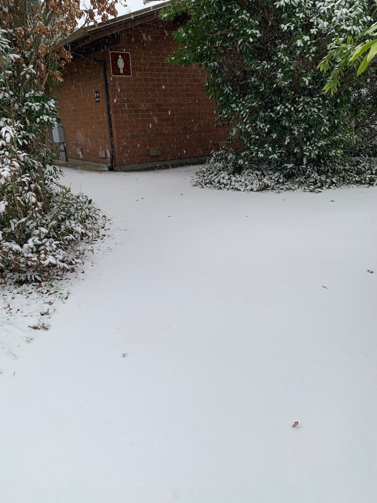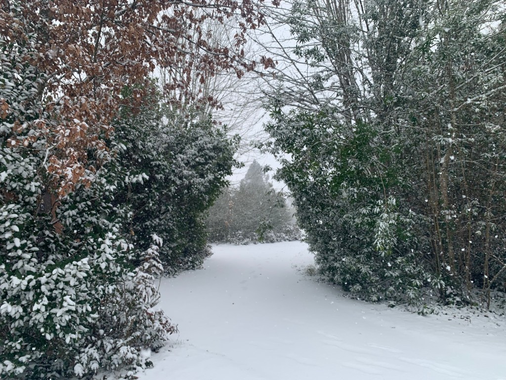 It was very beautiful, quiet and peaceful, but we worried about our other sisters’ safety of travel. Four of us took a walk in the falling snow, enjoying the winter wonderland.,