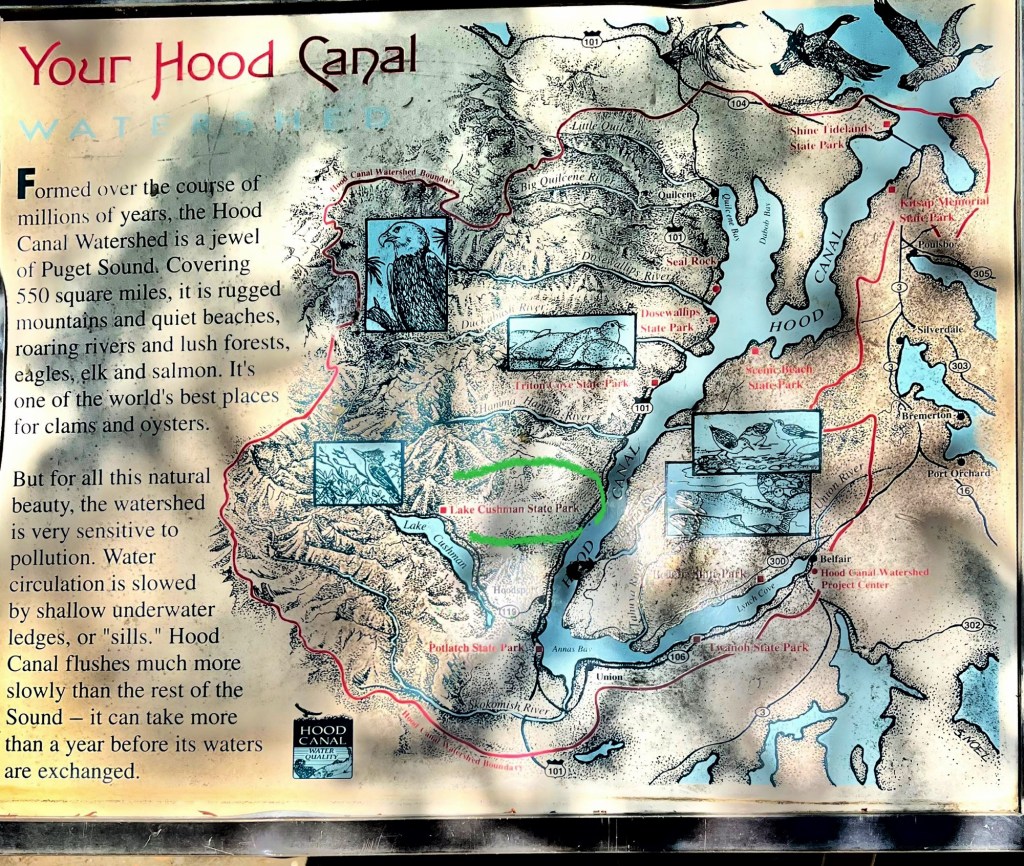 We didn’t take any ferry, and drove highways all around the waterways, with no views of the water until near Hoodsport.