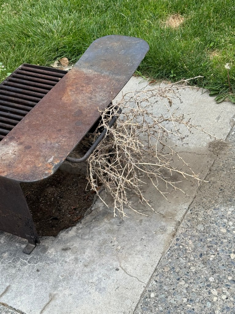 These weeds tumble in the western part of Washington, and one of them tumbled past me as I sat outside on the lawn.