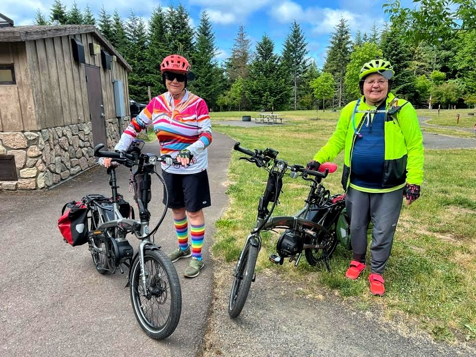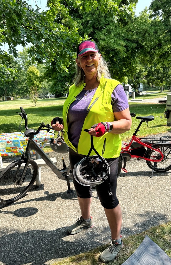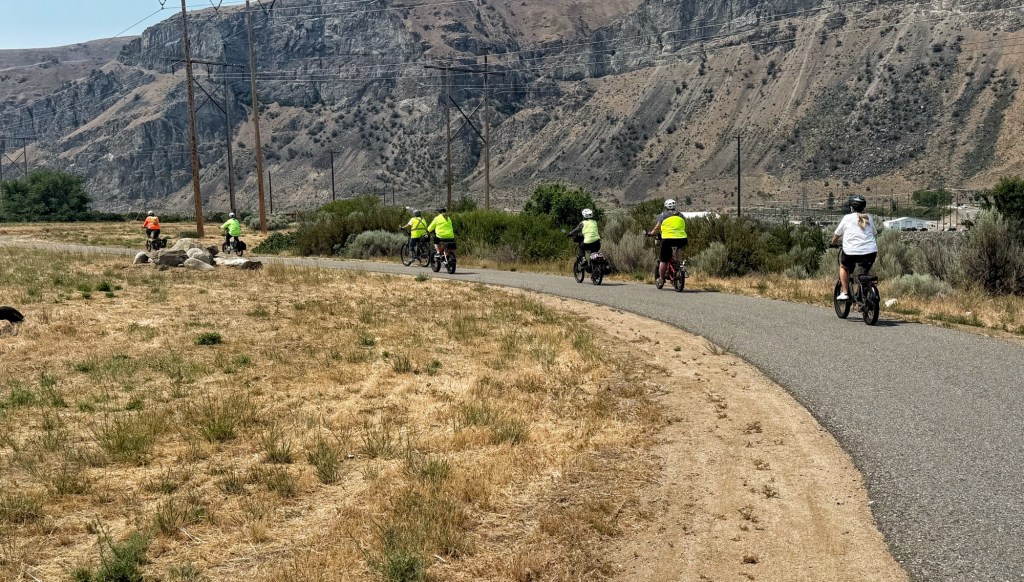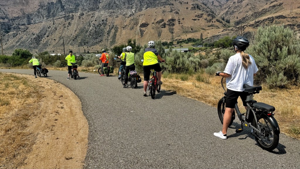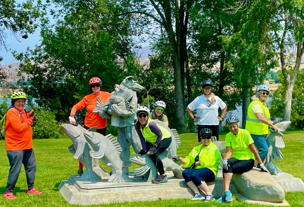After lunch at the market we would weave through the detour on roads with only a little traffic and in 1-2 miles rejoining the trail on the other side of the Columbia river to complete the loop. Susan did an outstanding job of leading us, and we were so thankful that we had tested this route the previous day! Normally there is a pedestrian/bike bridge that crosses seamlessly, but is it closed for some renovation and it is unclear when it will open again.