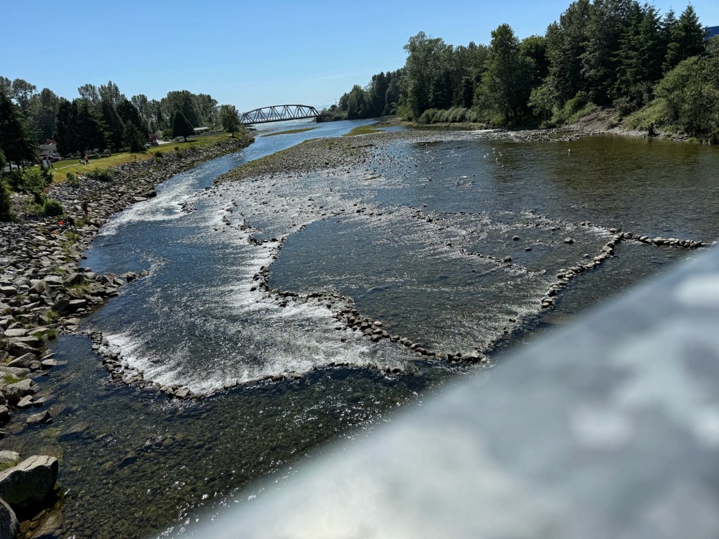 Well, it IS in Vancouver, a rather large metropolis! Once settled in, we got on our bikes to The Village at Park Royal for some marketing and to find a lunch place. This took us across the Capilano River.