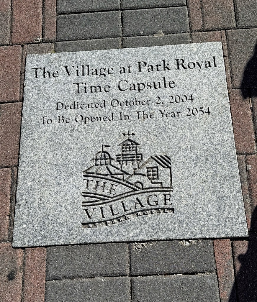 We found a perfect place for lunch on the patio, and discovered there is a time capsule buried out front.