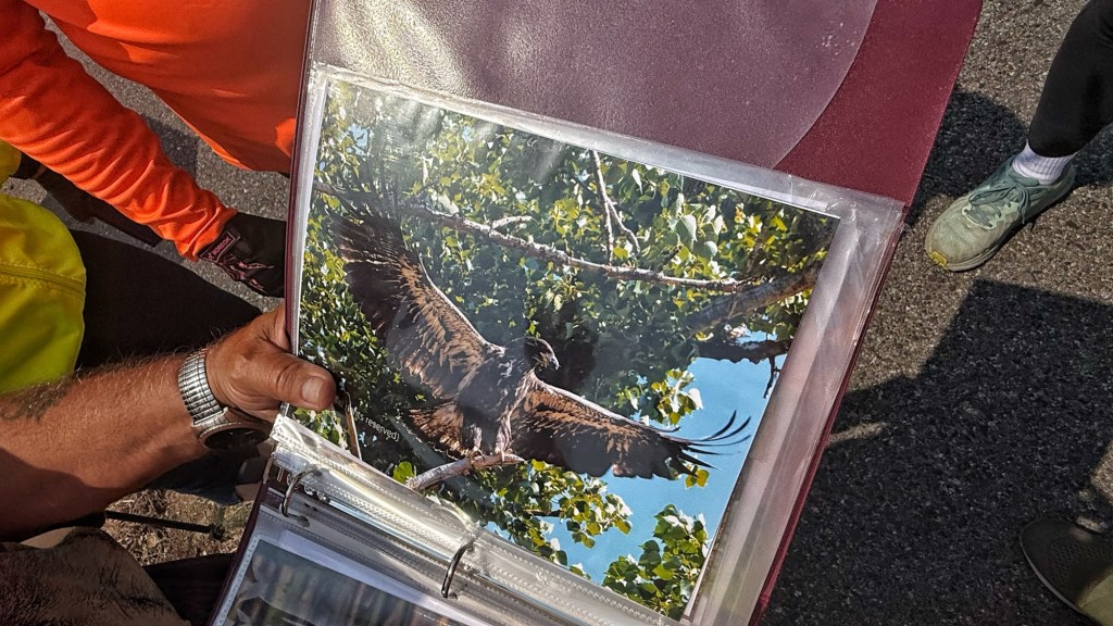 After oohing an aching a bit, we carried on and came upon Raymond Cook, a nature photographer, focusing on the eagle’s nest above us.